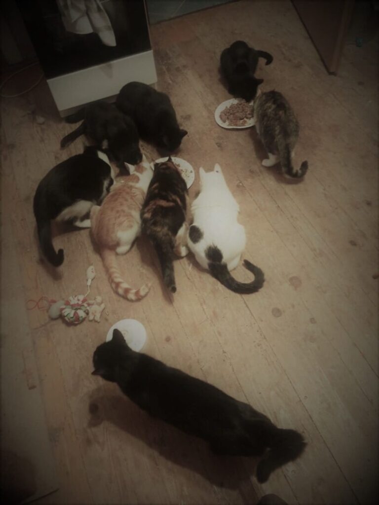 Zur Zeit beherbergen und versorgen wir dauerhaft rund 19 Katzen, alle kamen entweder von der Straße, aus Müllcontainern, Plastiksäcken oder Kartons zu uns, oft krank, verletzt, fast verhungert und verwahrlost.