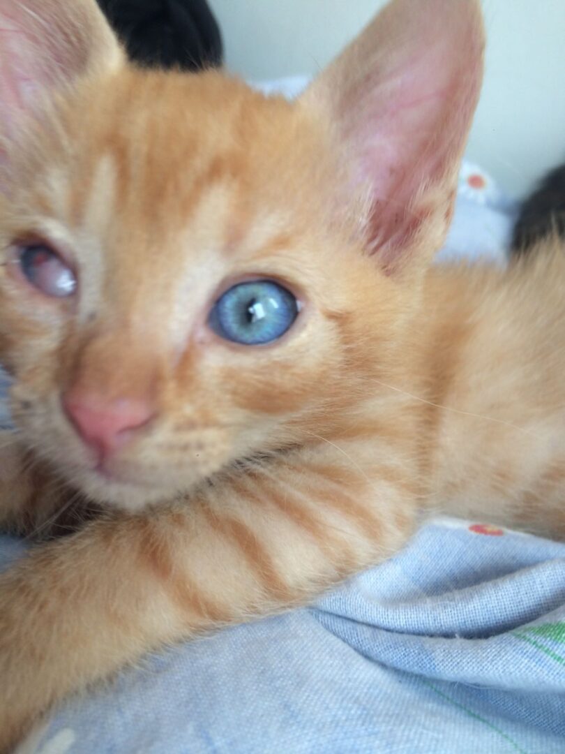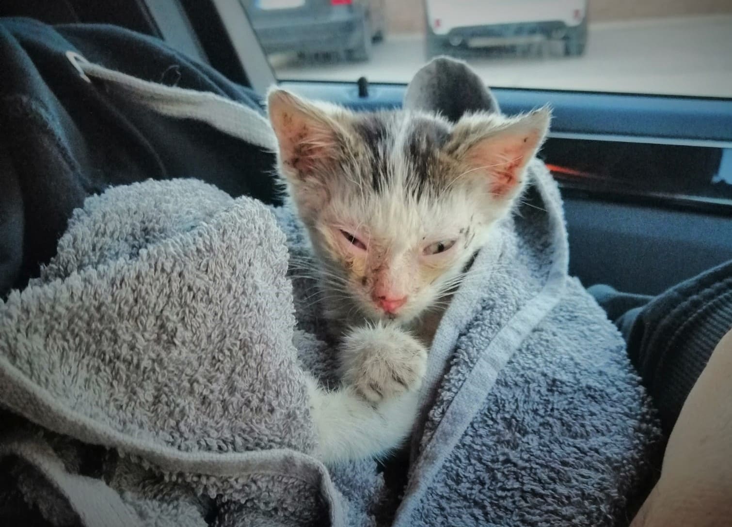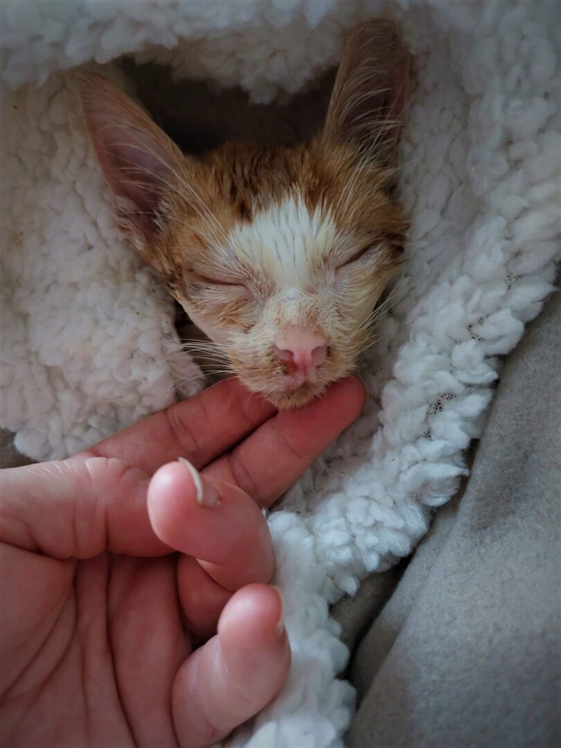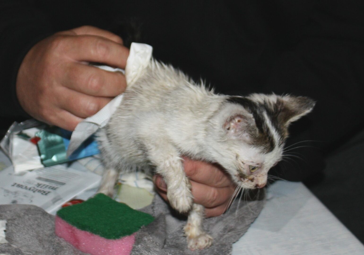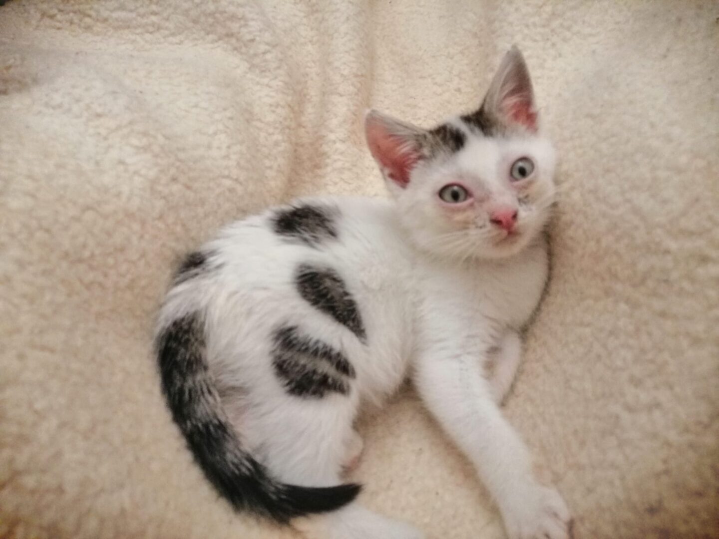 Ganz allein, hilflos und unterernährt wurde er in einer Wiese gefunden, ein Auge fast vollständig von einer massiven Herpesinfektion zerstört. Da er noch sehr jung war, mussten wir ihn noch mit der Flasche aufziehen. Obwohl wir nur eines seiner Augen komplett retten konnten, war es der Anfang von dem was wir heute sind und machen.