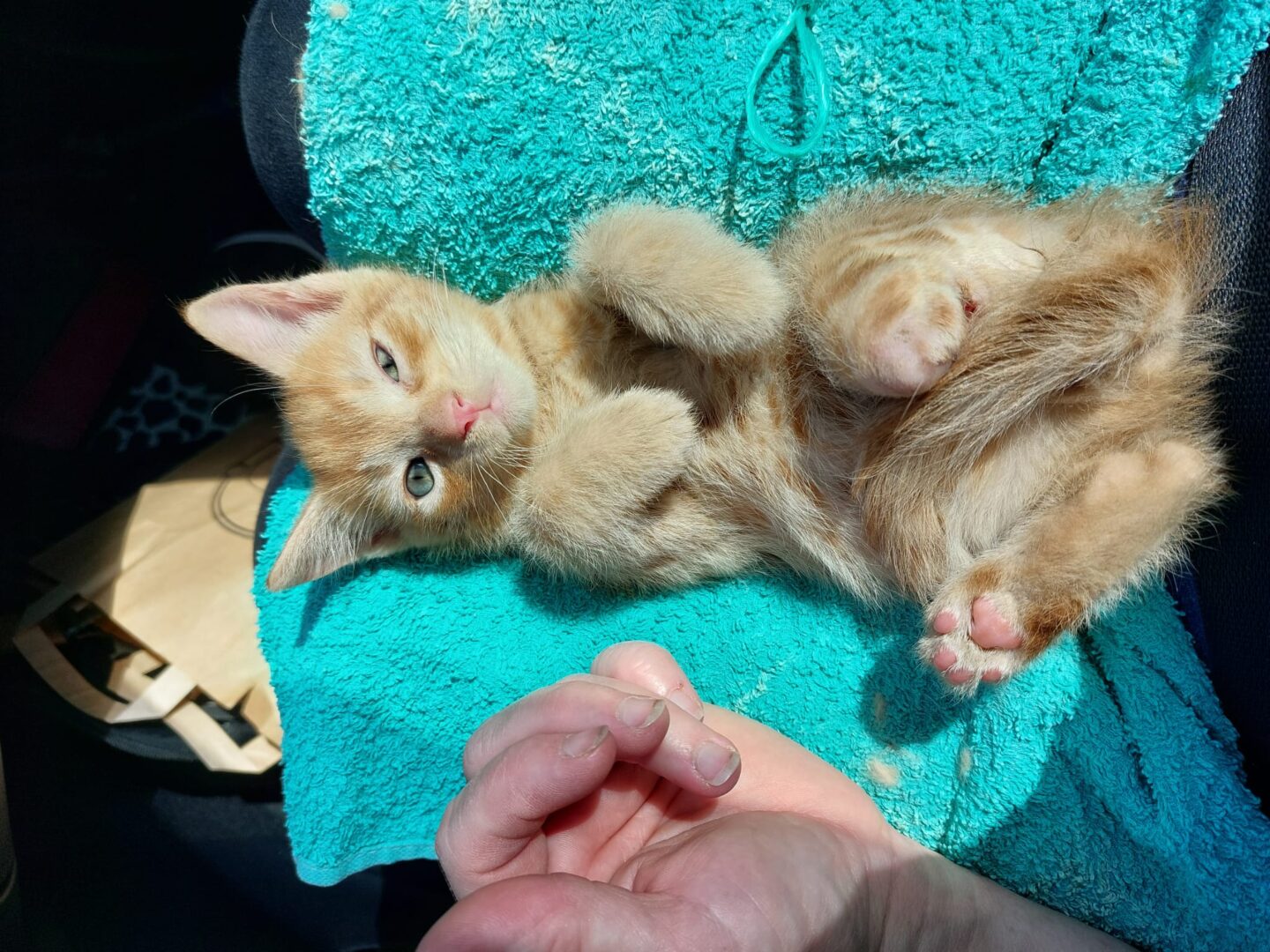 Er wurde im allerletzten Moment von einer Tierfreundin direkt aus dem Maul eines Hundes gerettet. Schwer geschockt, entkräftet und in schlechtem Allgemeinzustand wurde er uns übergeben.