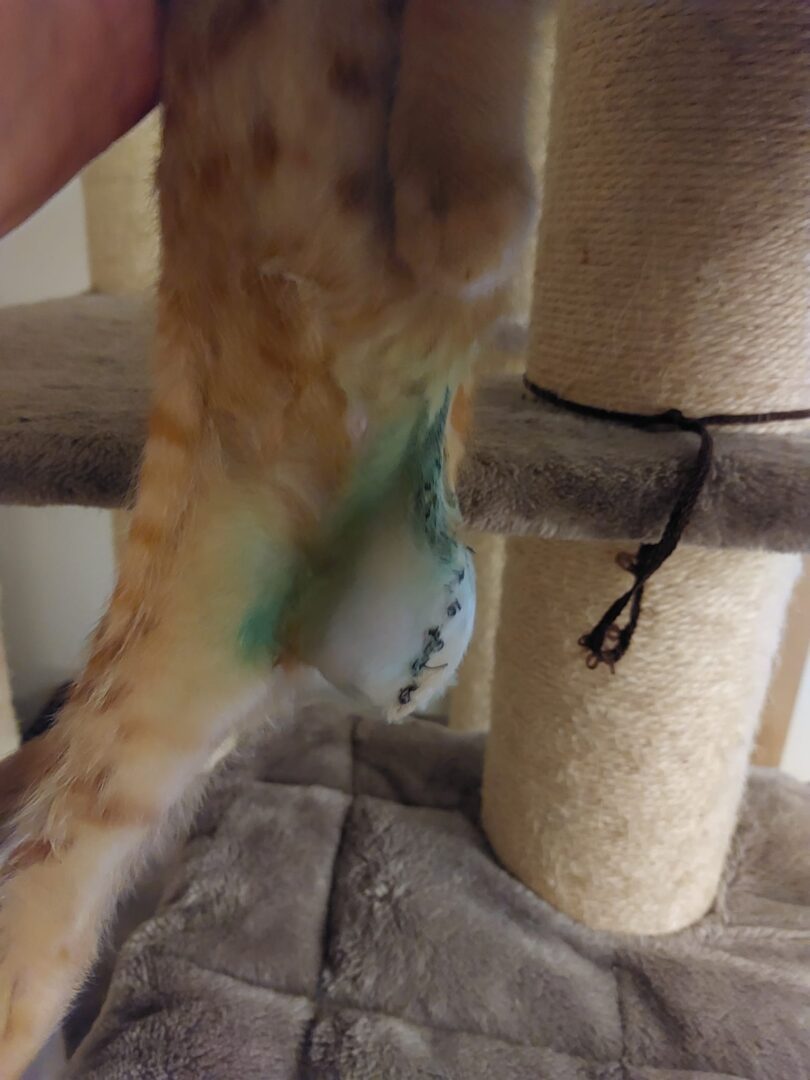 Doch Wegschauen heilt keine Wunden und wir haben den Kater sofort in tierärztliche Behandlung gebracht. Wie befürchtet war das Auge nicht mehr zu retten und musste operativ entfernt werden. Eine Drainage, wie auf den Fotos zu sehen, verhinderte eine Flüssigkeitsansammlung im Inneren der Augenhöhle.
